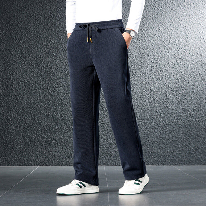 These drawstring pants are made from a soft, breathable knit fabric with a textured finish, offering easy movement and a comfortable feel throughout the day. The straight-leg fit and adjustable waistband make them an easy choice for home, travel, or casual daily wear.