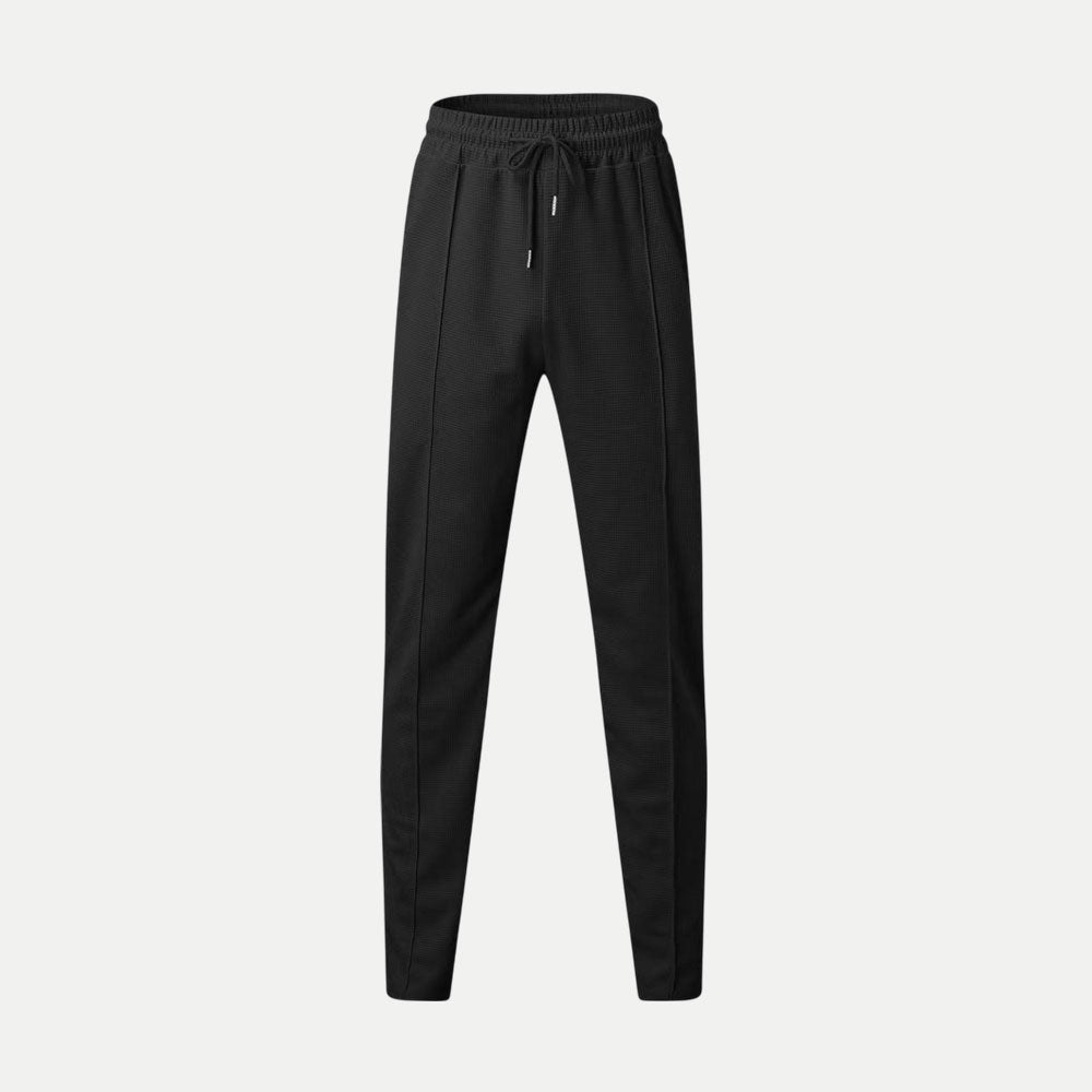 Sleek, modern, and built for all-day ease. The textured waffle fabric delivers breathable comfort with a refined look, while the slim, tapered cut keeps your style sharp. Perfect for casual wear, lounging, or pairing with a smart top for a polished vibe.